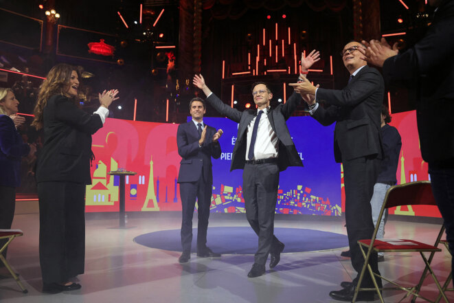 En meeting au Cirque d’hiver, le candidat soutenu par Édouard Philippe et Gabriel Attal a continué d’entretenir le flou sur la manière dont il comptait l’emporter face à ses concurrents de droite et de gauche aux élections municipales.